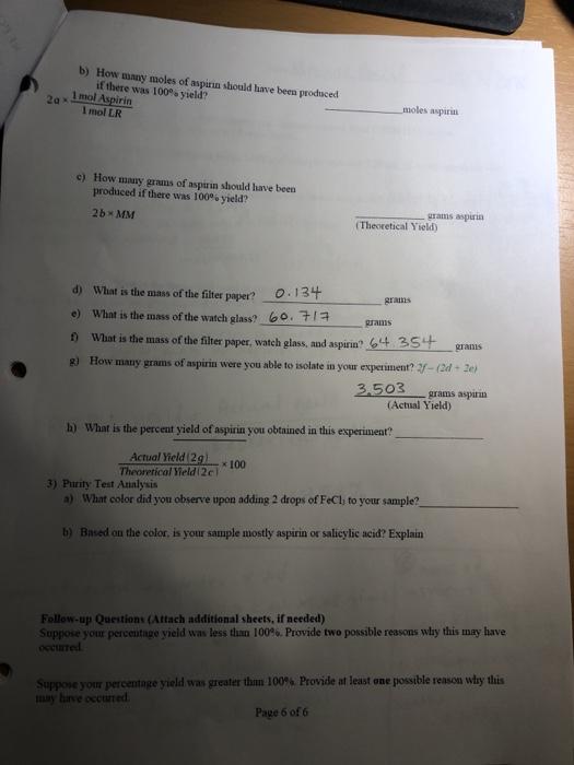 Solved Nane Report Sheets Synthesis Of Aspirin Show Your Chegg Com